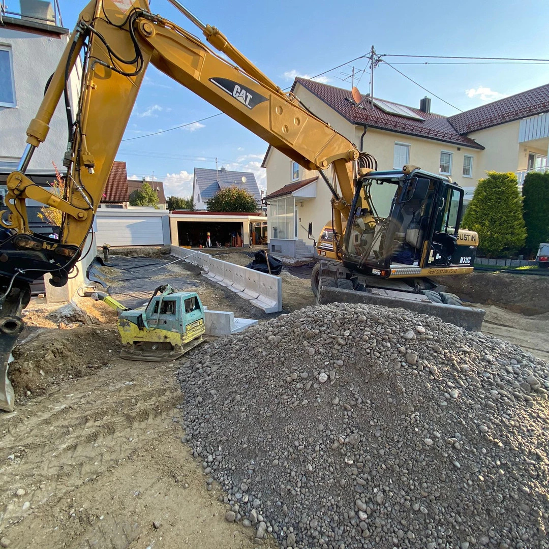 Ob für Abrissarbeiten wie Garagen, Mauern und Hütte oder Baggerarbeiten wie für Pools, Fundamente oder einem Bodenaustausch haben wir immer die richten Gerätschaften dabei.